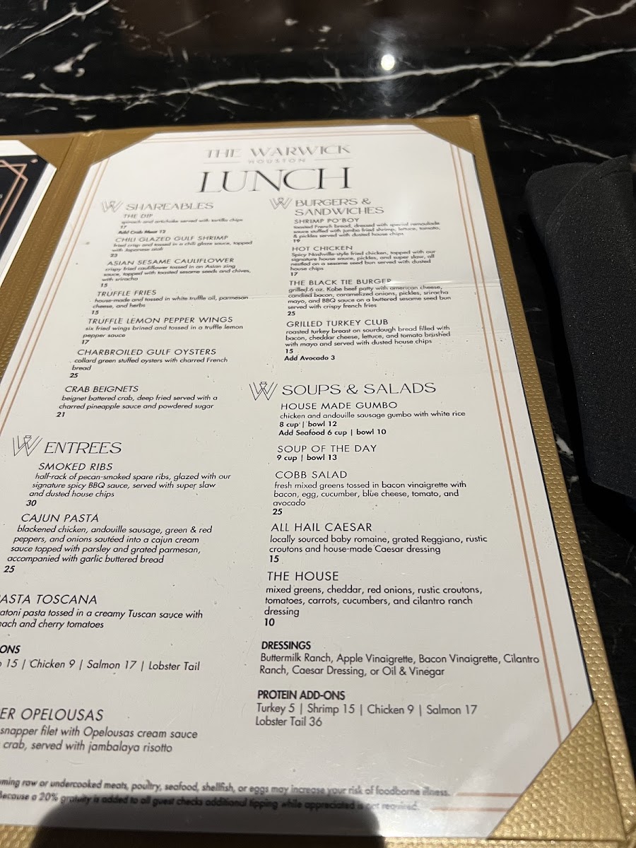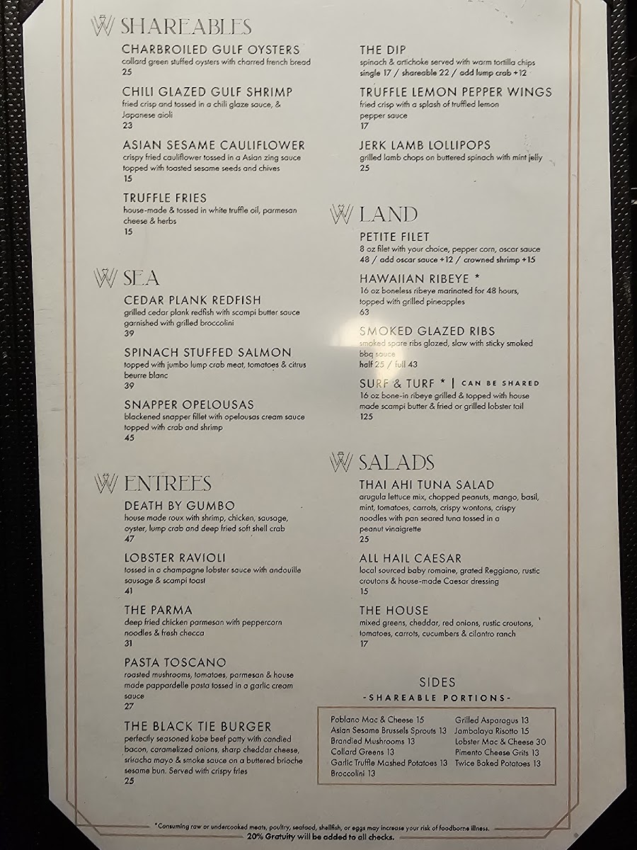 The menu highlights include thoughtfully prepared dishes like the snapper Orleans, truffle fries, and Warwick fried chicken & waffles, alongside seasonal shareables such as artichoke spinach dip and chili glazed gulf shrimp. These dishes often pair well with handcrafted cocktails like the chocolate cake martini, offering a balanced experience between comfort and sophistication.