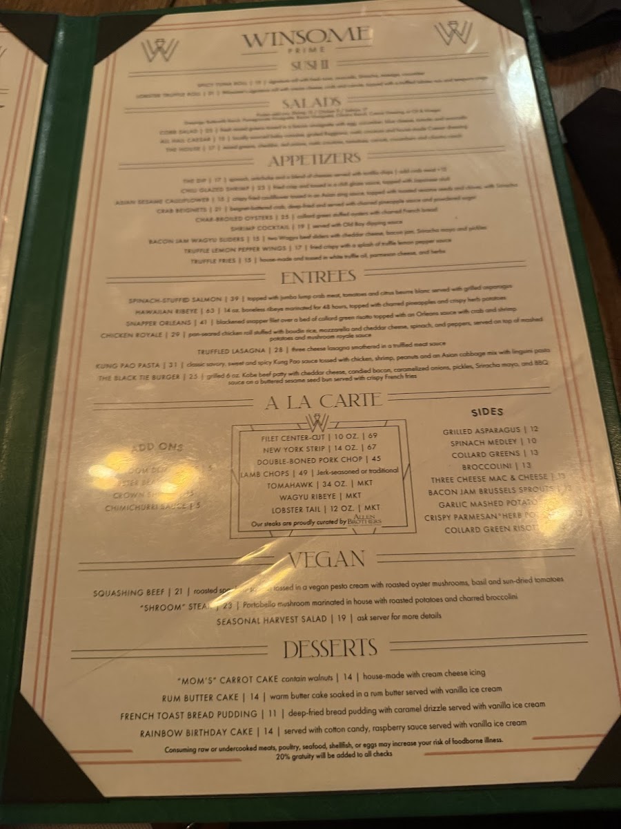 Winsome Prime offers a thoughtfully crafted menu that blends classic New American flavors with creative twists. The selection feels inviting and approachable, featuring both shareable small plates and hearty entrees that suit a variety of dining occasions—from relaxed lunches to intimate dinners. Whether you’re stopping by for a casual bite or celebrating a special moment, you’ll find options that complement the warm, welcoming atmosphere.